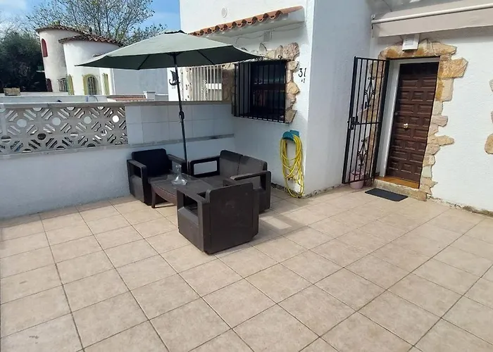 Sol Y Mar Villa Empuriabrava ligt op 4 km afstand van Castillo de la Trinidad en nodigt gasten uit om te ontspannen op een terras.